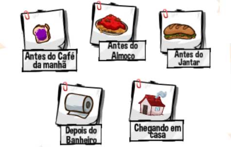 Mas não vale ser de qualquer jeito. Precisa fazer pelo menos cinco vezes por dia: ao chegar em casa, antes do café da manhã, antes do almoço, antes do jantar e depois de usar o banheiro!