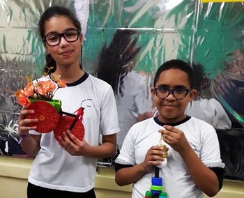 Lá, você pode conhecer boas ideias de outros alunos e professores, como é o caso da Laís, estudante de Escola Manoel Cação, de Mauá – SP. Ela montou um enfeite de bicicleta utilizando materiais recicláveis