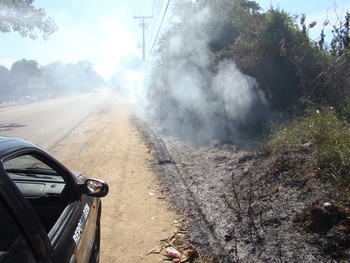eu anotei, que tem muito lixo na rua e muota fumaca de onibos e carros.