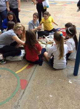 Confeccionamos porta-retratos com o uso de jornal, papelão e filtros de café, também fizemos chocalho com sementes e garrafas pet. Passamos o dia e a tarde em trabalho, consientizando todos os alunos desde a terceira série do fudamental até o terceiro do ensino médio.